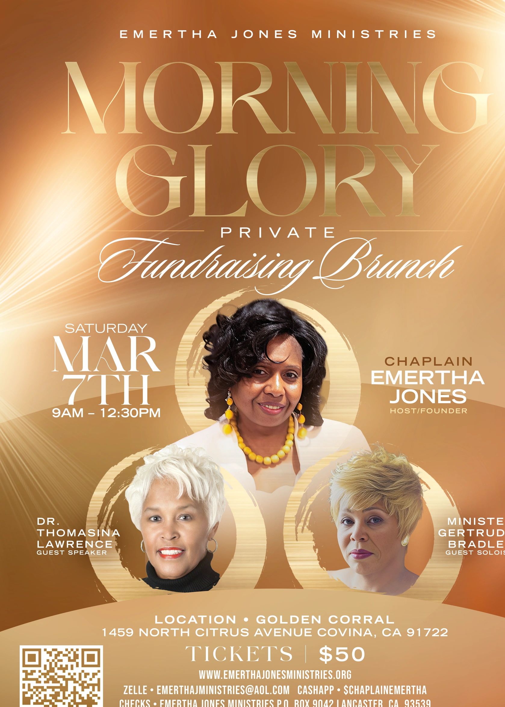 Join us for an exclusive spirit filled morning in the Private Banquet Room at in the city of Covina, Ca. Enjoy a graceful setting reserved just for our guests as we come together for a meaningful fundraiser in support of Extraordinary Journeys Honors—featuring the Word of God and uplifting worship.